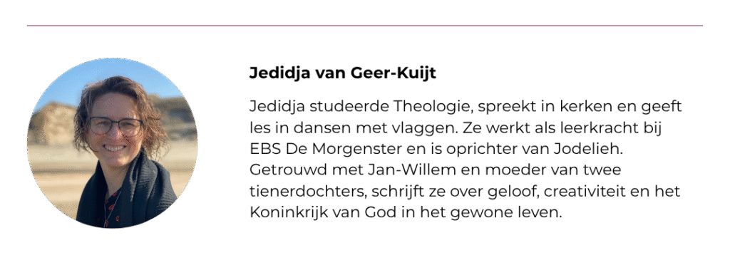 Jarenlang gaf ik les in worship met vlaggen. Ik vond het geweldig om te zien hoe kinderen, jongeren en volwassenen tot bloei kwamen, hun angst loslieten en zich overgaven aan hun passie. Datzelfde herkende ik in mijn tijd bij de Rotsvast Bijbelschool.